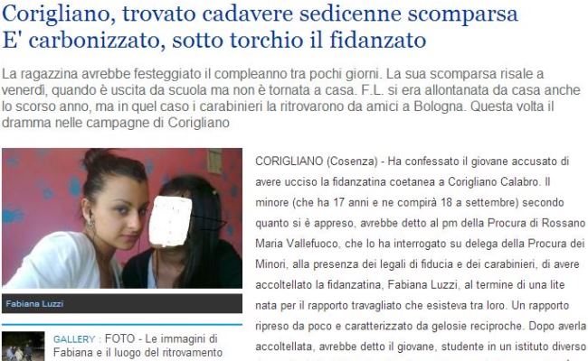 L’ennesimo caso di femminicidio, l’ennesimo caso di brutale violenza verso una giovane donna. In tutto questo mi colpisce la pagina del giornale on line in cui: pubblicano il nome e la foto della vittima ma allo stesso tempo le inziali in modo da preservare la “privacy” della ragazza uccisa.