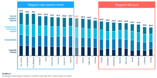 Secondo quanto certificato dal rapporto DESI regionale 2021, redatto dal Politecnico di Milano (che prende a riferimento dati 2020), la...